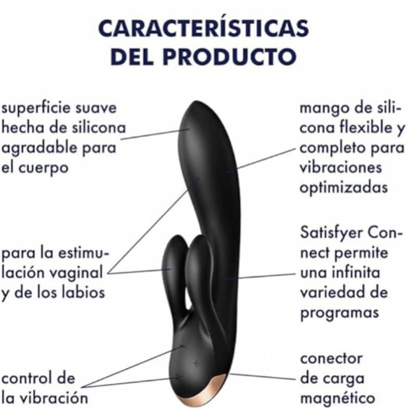 - Nombre del modelo: Satisfyer, vibrador, conejito con Bluetooth, Double Flex Connect App, 20 cm, con app, 3 motores, totalmente de silicona completa, recargable, impermeableSatisfyer, vibrador, conejito con Bluetooth, Double Flex Connect App, 20 cm, con app, 3 motores, totalmente de silicona completa, recargable, impermeable